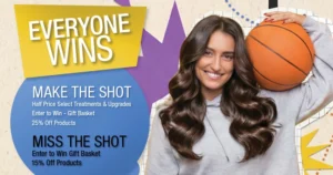 Whether you “make the shot” or “miss the shot,” you’ll score great savings on salon and spa services, retail products, and even a chance to win a special gift basket.